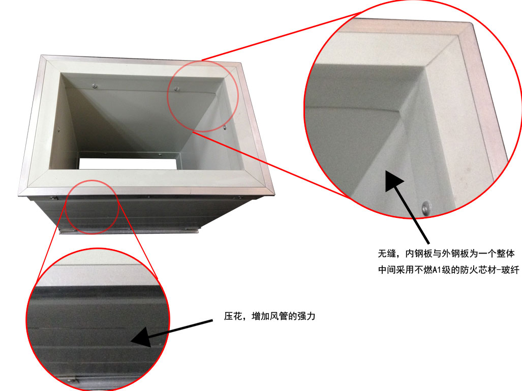 風管中間層具有優(yōu)秀的多孔材料——超細玻璃棉板能充分吸收各種噪聲的能量,使空間有一個非常安靜溫馨的環(huán)境。并且防火、無毒、無味。